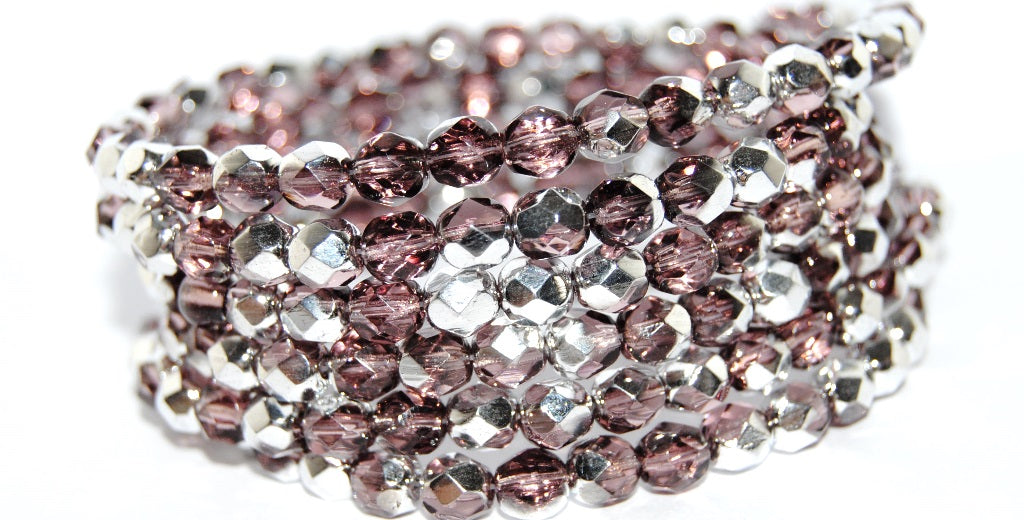火抛光圆形刻面珠,透明浅紫水晶银半涂层(20040-27001),玻璃,捷克共和国 ~ STRANDED