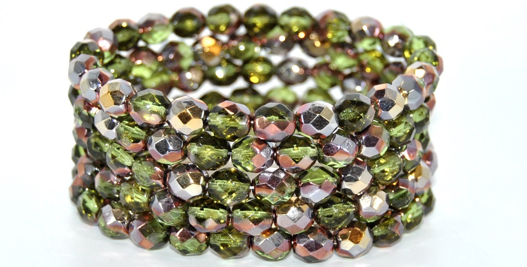 火抛光圆形刻面珠,祖母绿玫瑰金卡普里 (50120-27101),玻璃,捷克共和国 ~ STRANDED