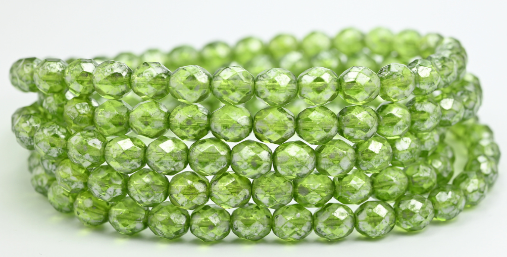 火抛光圆形刻面珠,透明绿银飞溅 (50500-86700),玻璃,捷克共和国 ~ STRANDED