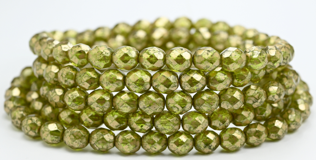 火抛光圆形刻面珠,透明绿金飞溅 (50500-86720),玻璃,捷克共和国 ~ STRANDED