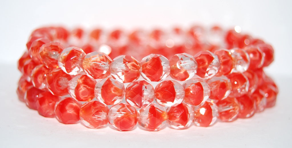 火抛光圆形刻面珠,红色(96026),玻璃,捷克共和国