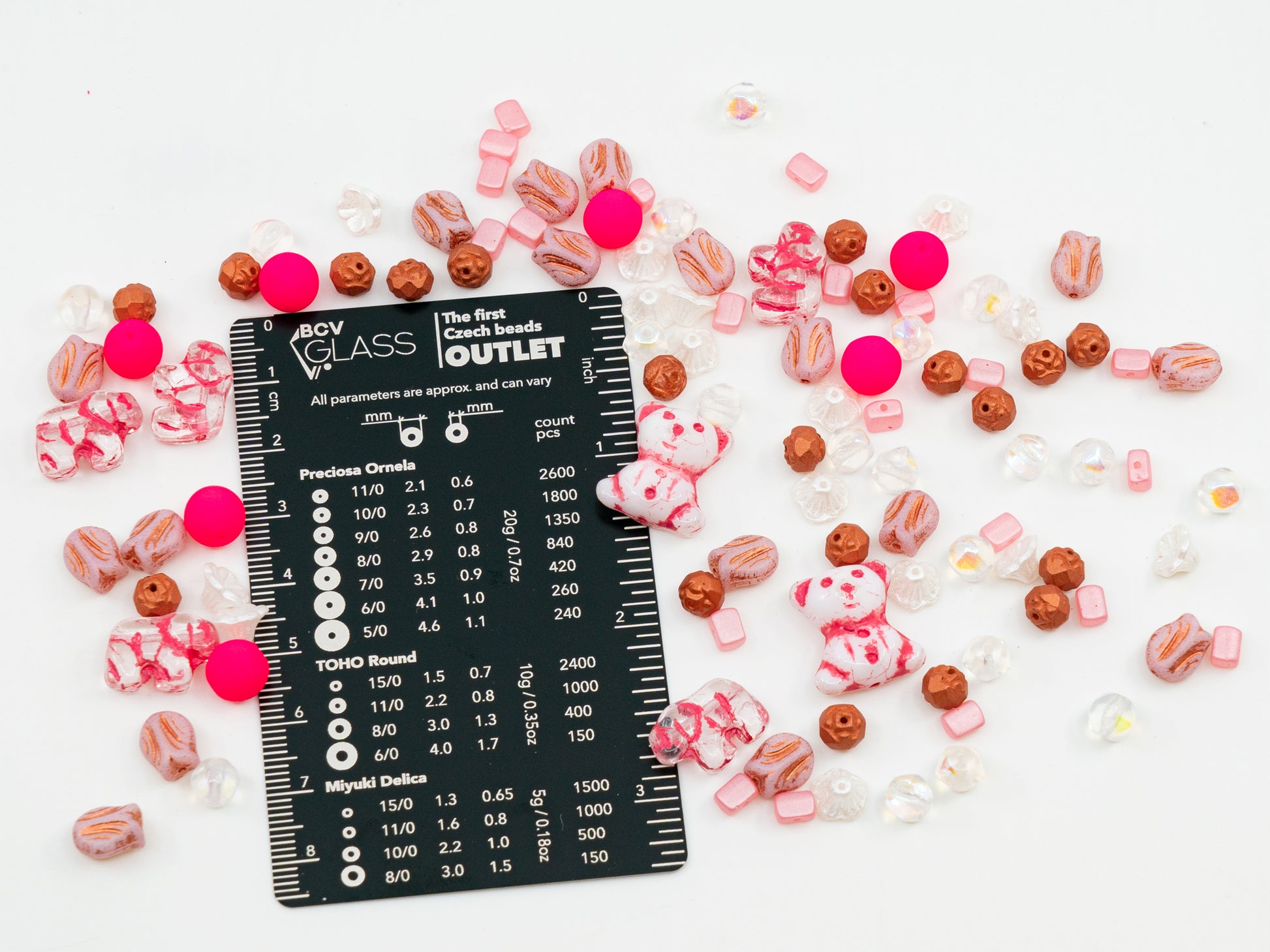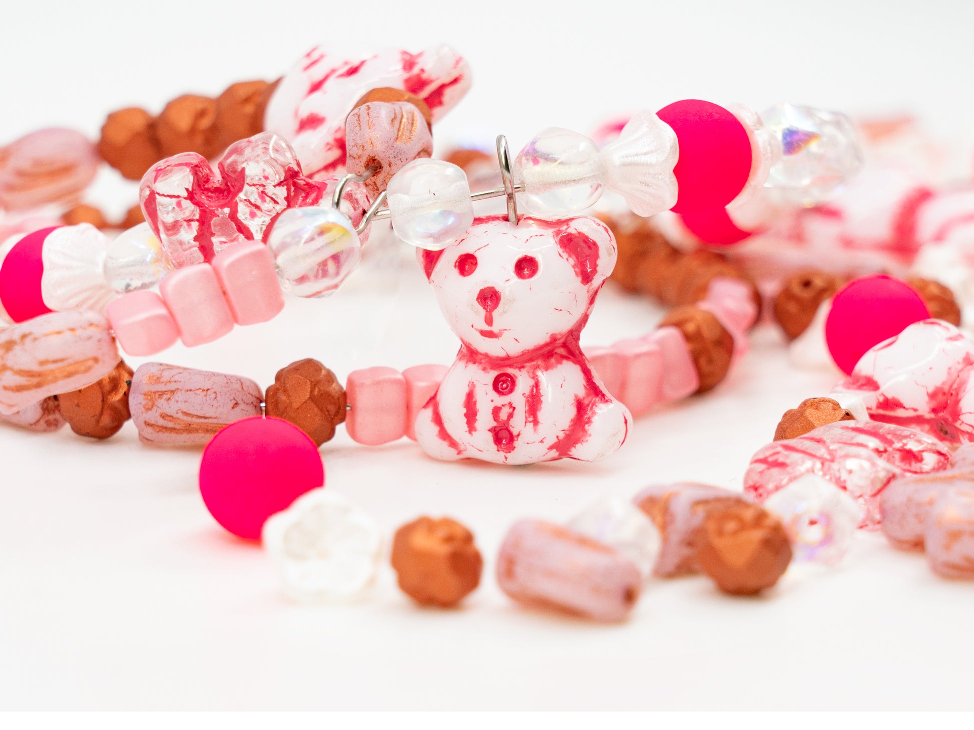 LIMITED Mix of Czech Glass Beads, Hand Made Set Kit, Crystal AB Pink Cute Bear Beads