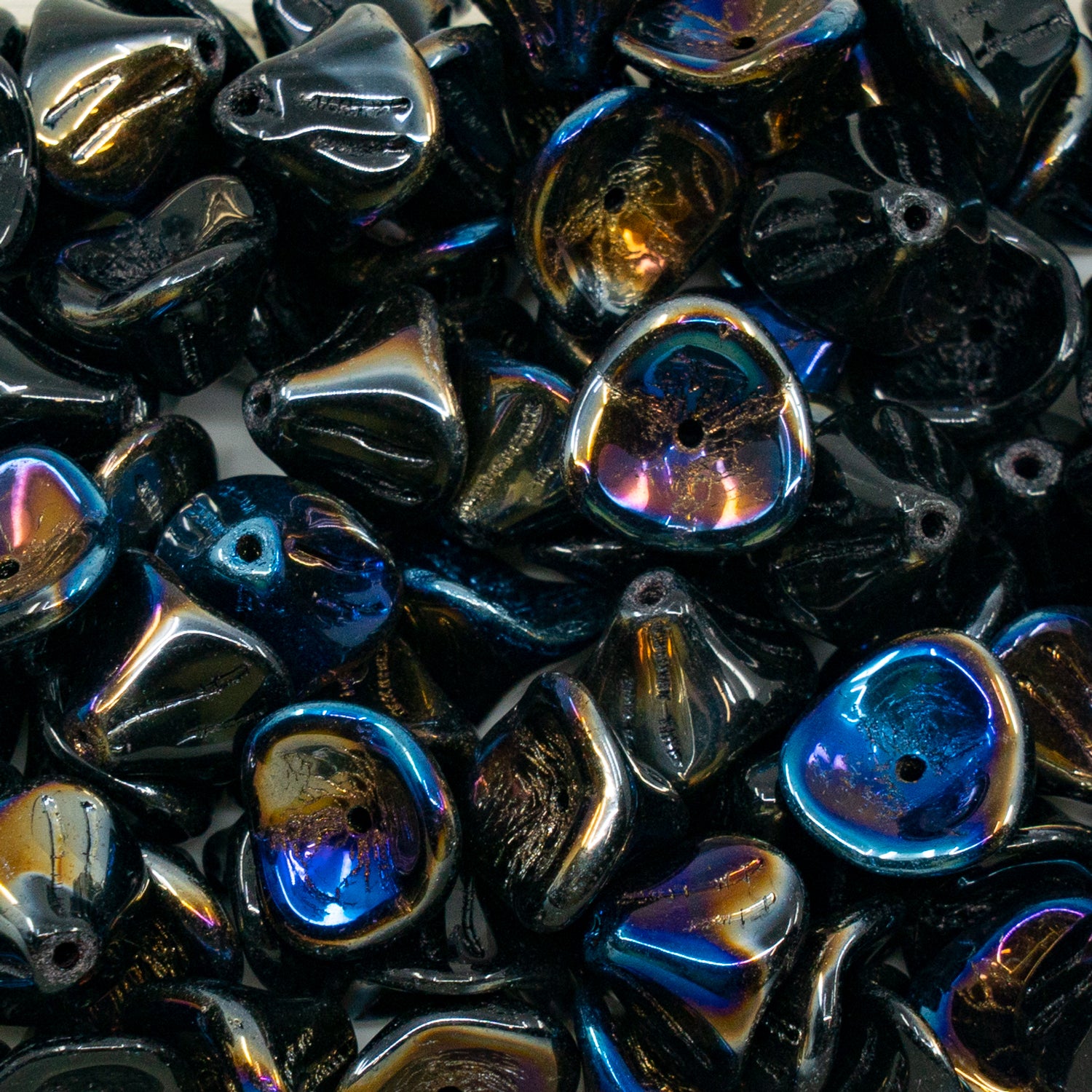 OUTLET 50克萱草花珠,10 x 12毫米,黑色Azuro(23980-azuro),玻璃,捷克共和国