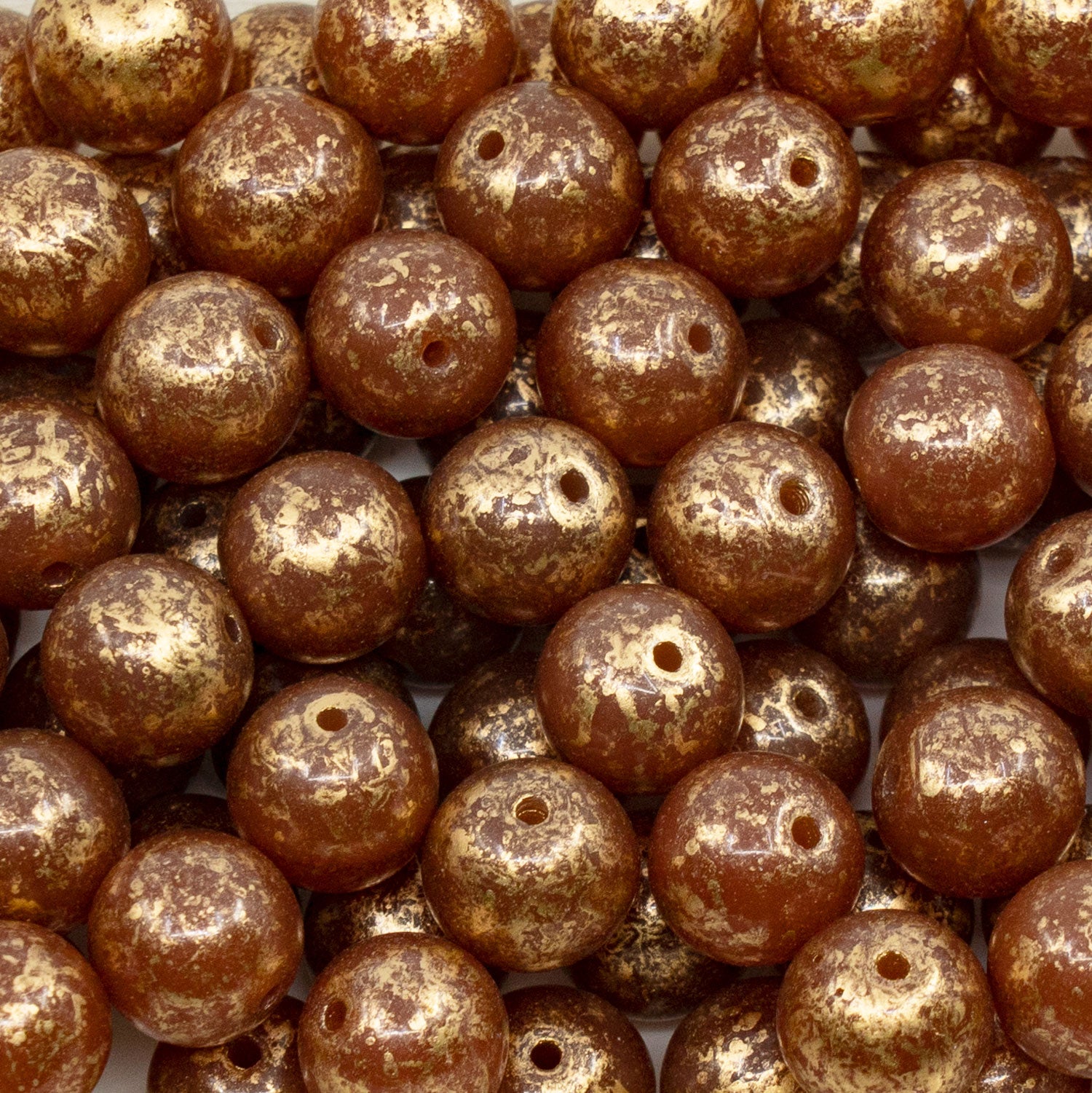 奥特莱斯 250克圆形Druck珠,10 x 10毫米,蛋白石棕金飞溅(12000-95501),玻璃,捷克共和国