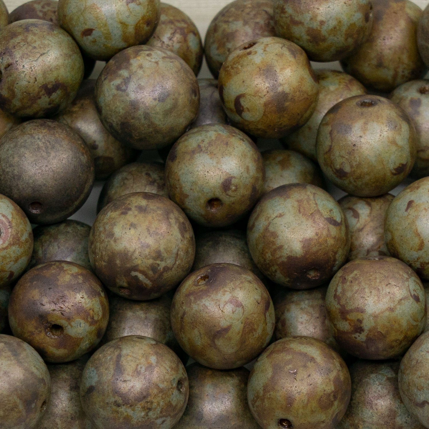 奥特莱斯 250克圆形Druck珠,12 x 12毫米,粉笔白色哑光染色,蓝色光泽 (03000-84100-65431),玻璃,捷克共和国