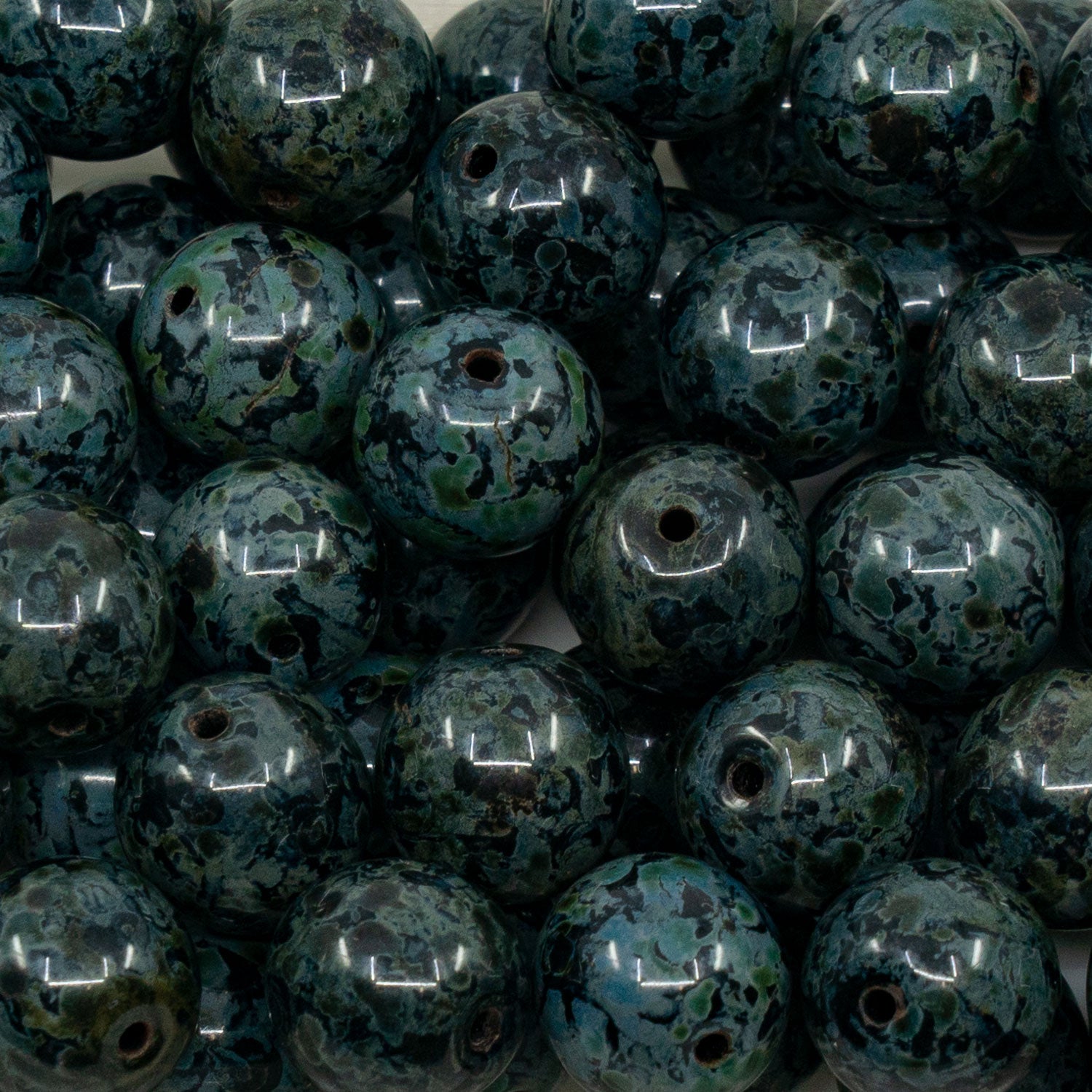 奥特莱斯 250克圆形Druck珠,12 x 12毫米,黑色石灰华(23980-86800),玻璃,捷克共和国