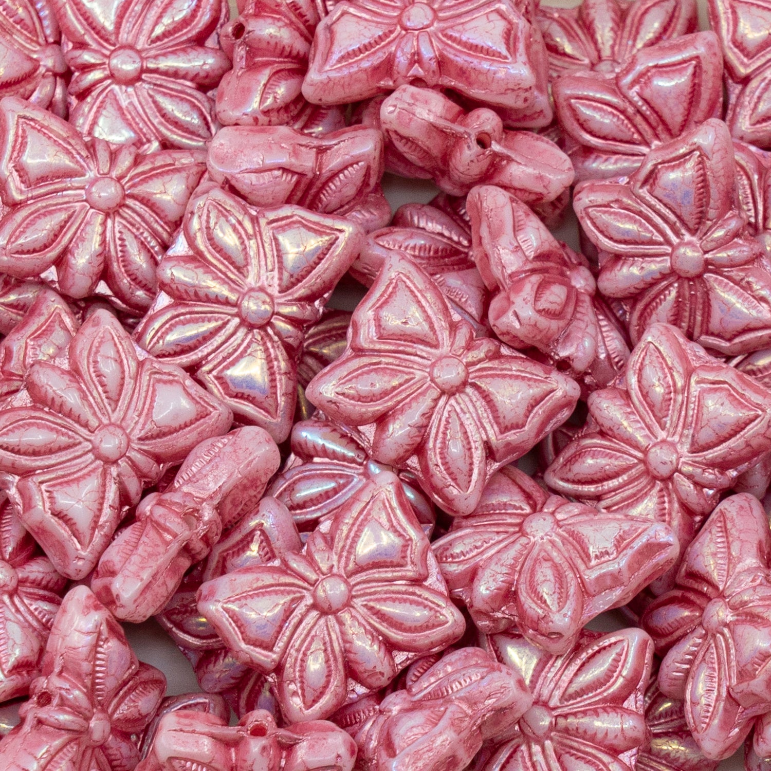 OUTLET 50克蝴蝶珠,15 x 12毫米,白色AB全珠(双侧)粉色内衬(02010-28703-54321),玻璃,捷克共和国