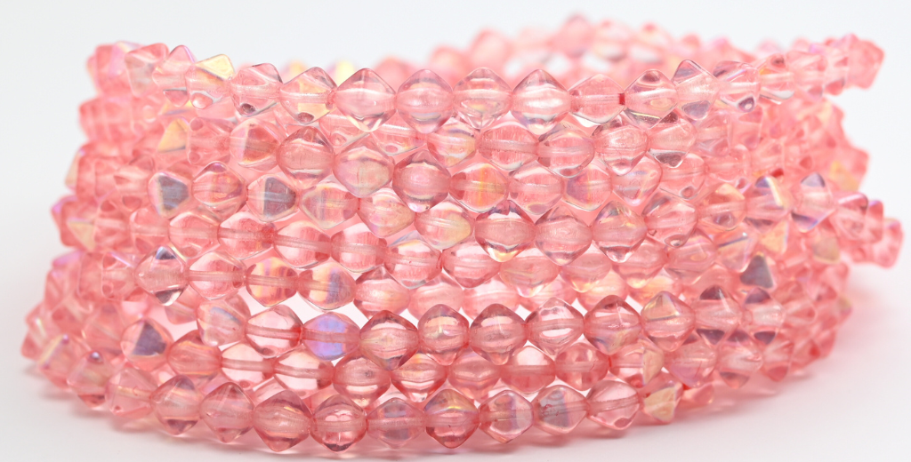 灯笼双锥形压制玻璃珠,水晶浅粉色 (00030-34304-AB),玻璃,捷克共和国 ~ 串珠