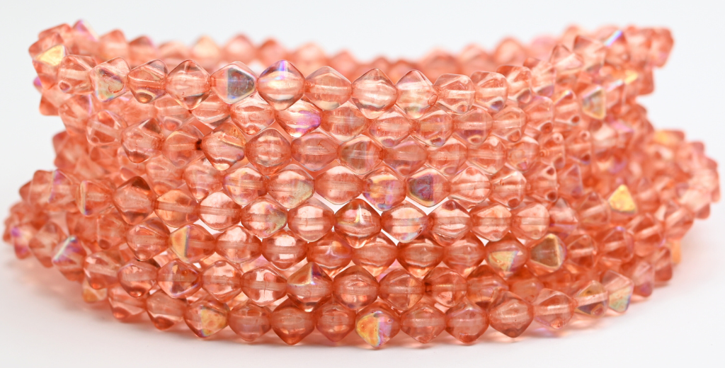 灯笼双锥形压制玻璃珠,水晶浅粉桃色 AB (00030-34305-AB),玻璃,捷克共和国 ~ 串珠
