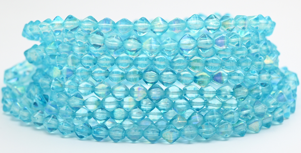 灯笼双锥形压制玻璃珠,水晶浅水蓝色 (00030-34308-AB),玻璃,捷克共和国 ~ 串珠
