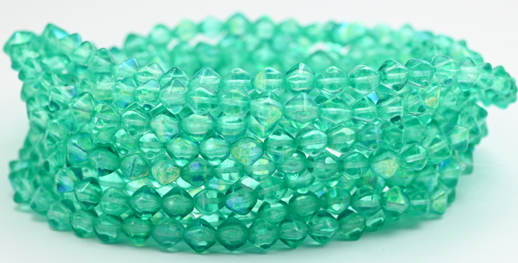 灯笼双锥形压制玻璃珠,水晶浅绿松石色 (00030-34309-AB),玻璃,捷克共和国 ~ 串珠