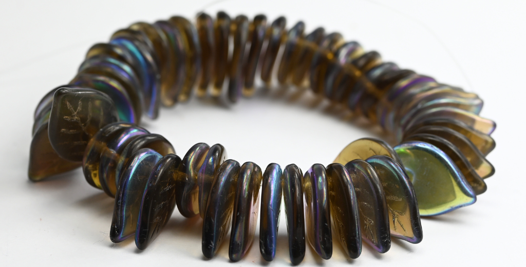 叶压玻璃珠,透明棕色 Ab (10200-AB),玻璃,捷克共和国