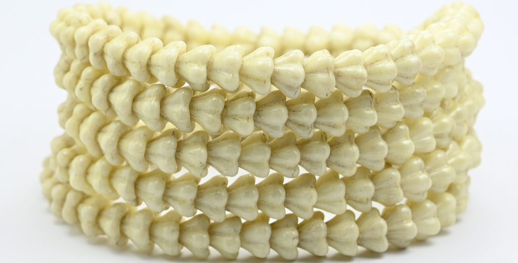 铃兰花压花玻璃珠,白色光泽黄色全涂层(02010-14483),玻璃,捷克共和国 ~ 串珠
