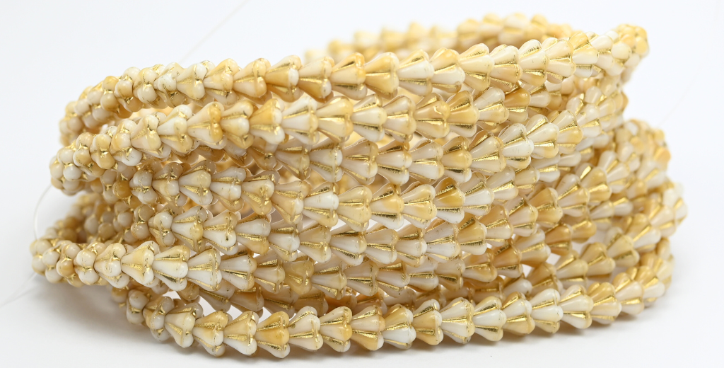 钟花压制玻璃珠,深米色金色内衬 (07193-54202),玻璃,捷克共和国 ~ STRANDED