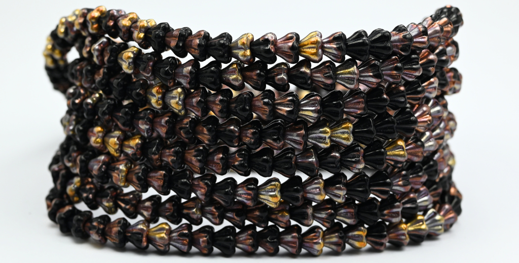 铃兰压花玻璃珠,黑色牡荆(23980-VITEX),玻璃,捷克共和国 ~ 串珠