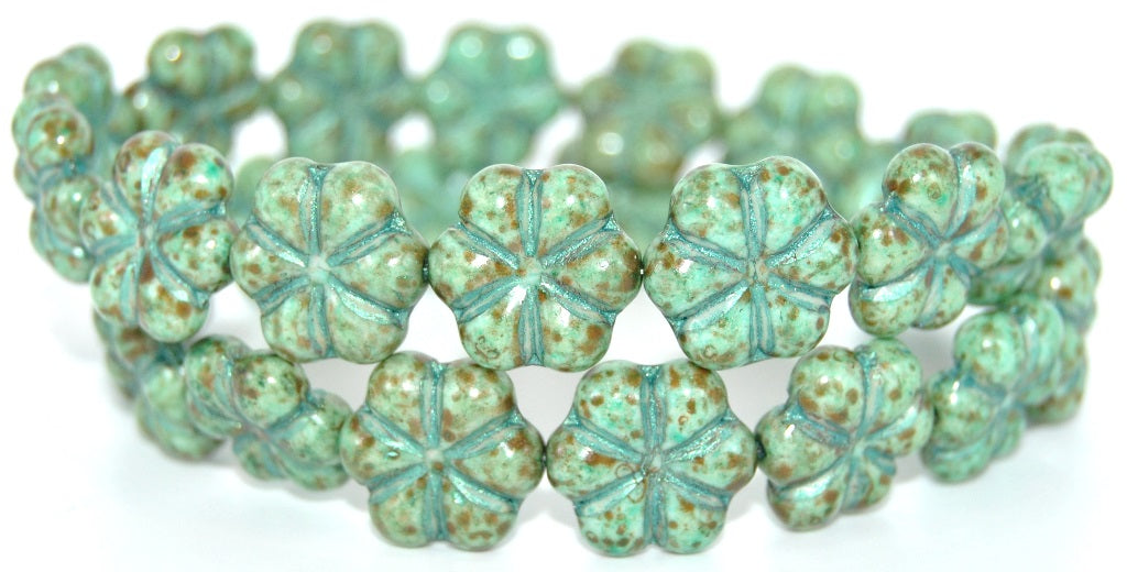 六瓣花压珠,白色染色,强浅蓝色内衬,浅绿松石色 (02010-86805-43811-34309),玻璃,捷克共和国 ~ STRANDED