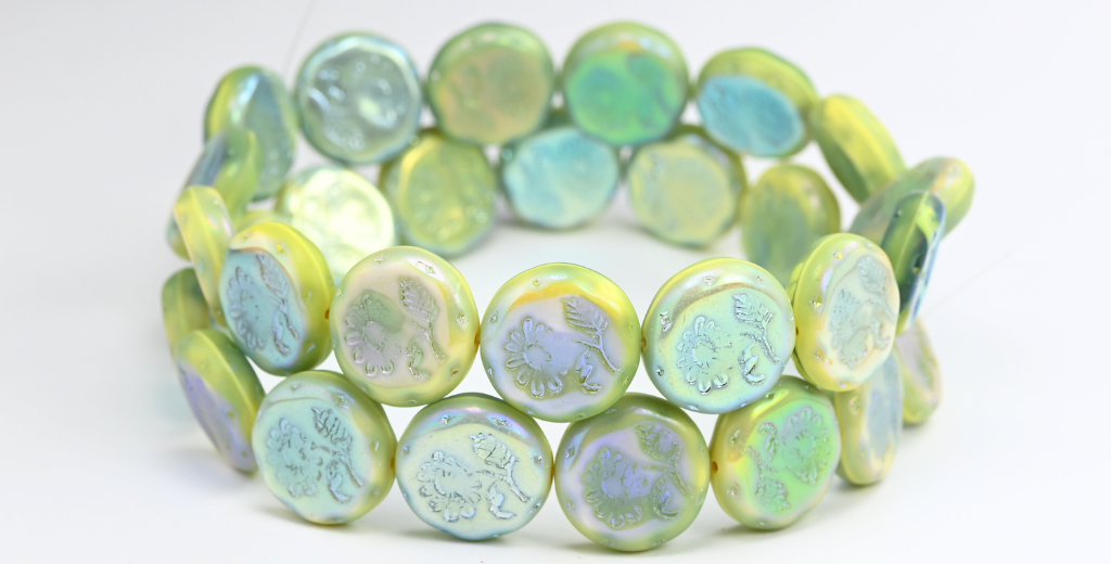 圆形扁平玛格丽特花朵压制玻璃珠,87553 Ab 2X (87553-AB-2X),玻璃,捷克共和国