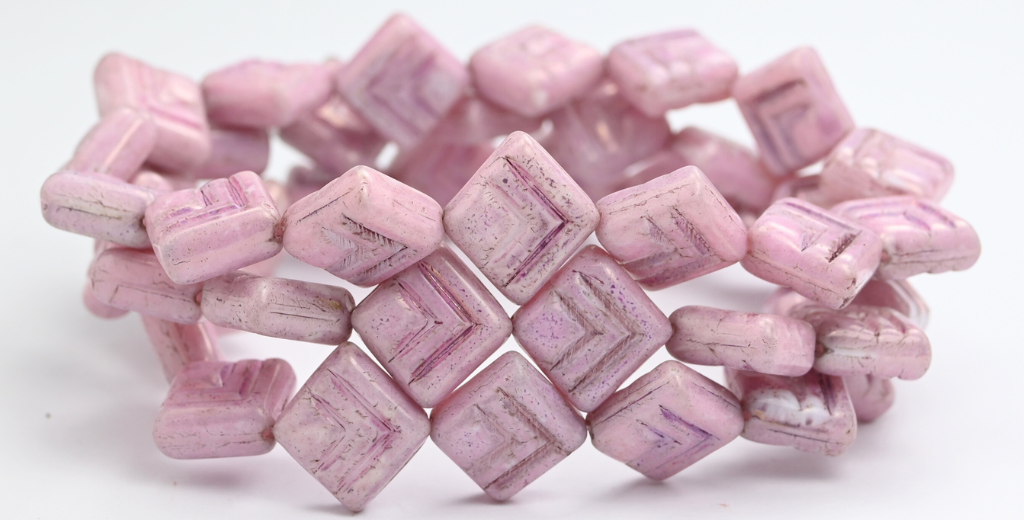 菱形压制玻璃珠,白色光泽紫丁香色 (02010-14494),玻璃,捷克共和国