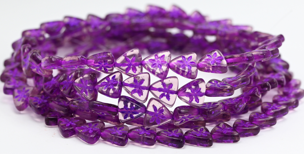 三角形扁平花形压制玻璃珠,透明浅紫水晶紫色内衬 (20020-46420),玻璃,捷克共和国