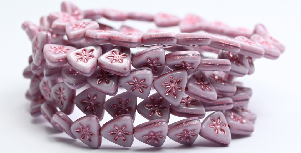 三角形扁平花朵压制玻璃珠,丝绸薰衣草粉色内衬 (24010-54321),玻璃,捷克共和国