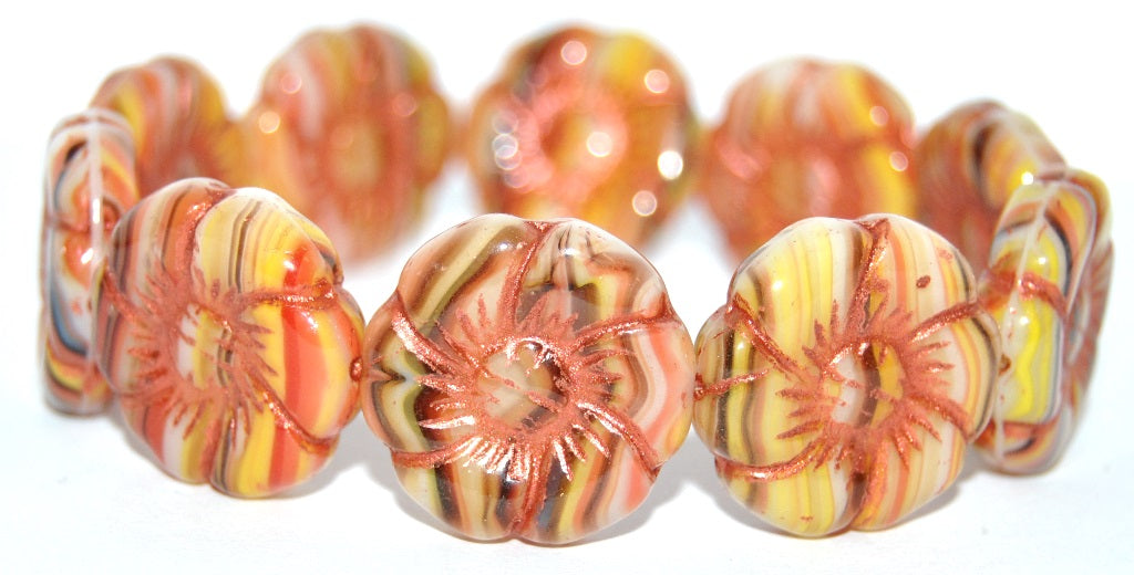 大五瓣花压珠,彩色条纹铜衬里 (95810-54319),玻璃,捷克共和国 ~ STRANDED