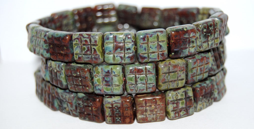 方形压制玻璃珠,含9个正方形,蛋白石粉色染色,强度高 (71010B-86805),玻璃,捷克共和国