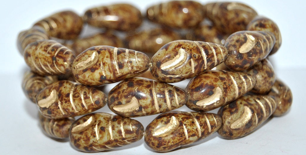 Camaenidae 贝壳压制玻璃珠,米色石灰华 54202 (13020 86800 54202),玻璃,捷克共和国 ~ STRANDED