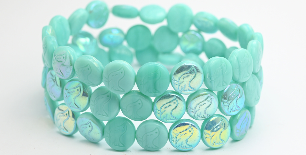 圆形硬币,饰有行走鸟珠,蛋白石祖母绿 Ab(52050-AB),玻璃,捷克共和国