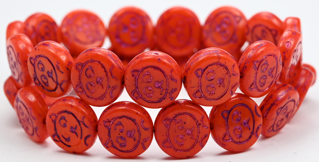猫嘴硬币珠,蛋白石红 54520 (91240-54520),玻璃,捷克共和国 ~ STRANDED