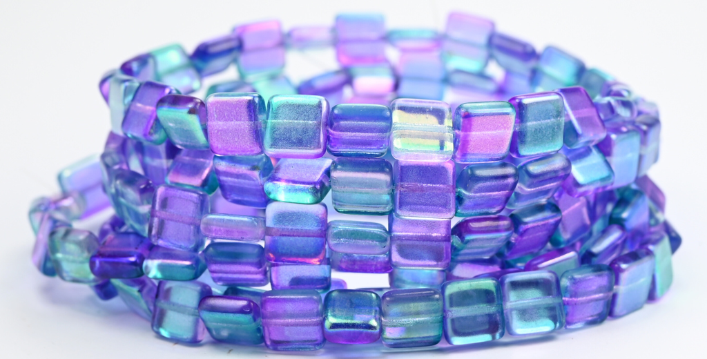 扁平方形压制玻璃珠,水晶光泽蓝紫色 (00030-48123),玻璃,捷克共和国 ~ STRANDED