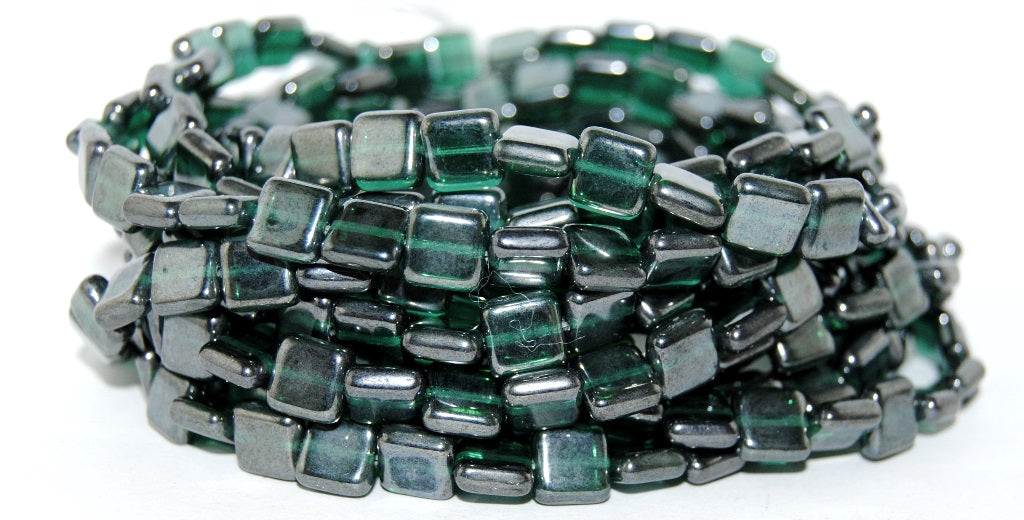 扁平方形压制玻璃珠,透明绿色祖母绿赤铁矿(50710-14400),玻璃,捷克共和国
