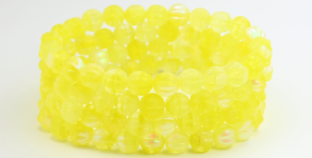 带条纹的瓜圆形压制玻璃珠,黄色混合 Ab (86036S-AB),玻璃,捷克共和国