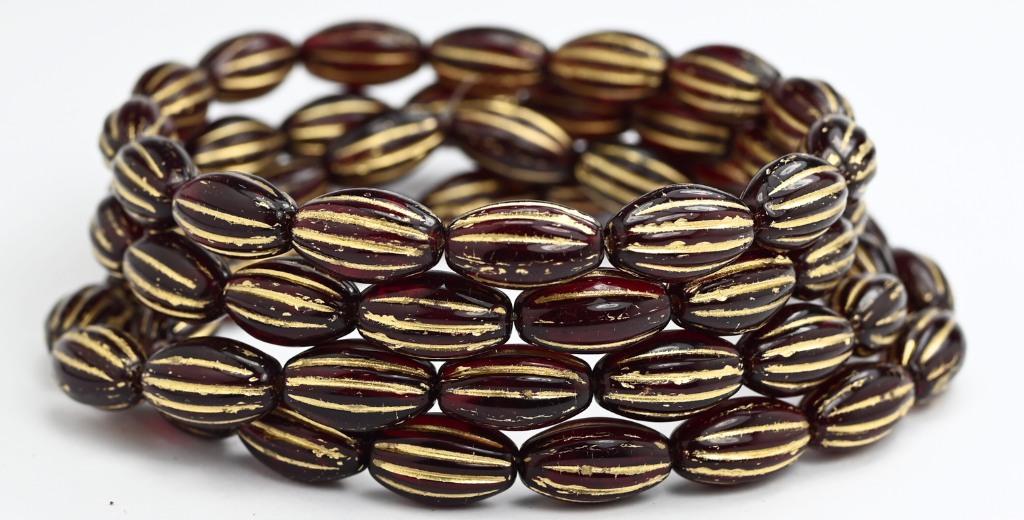 椭圆形瓜珠,透明红金衬里(90090-54202),玻璃,捷克共和国