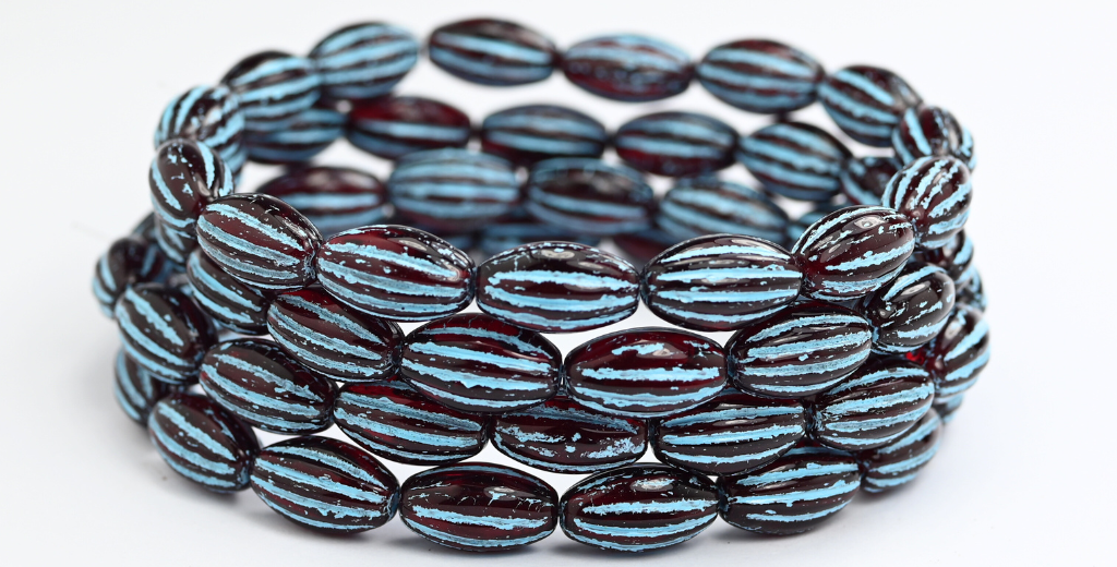 椭圆形瓜珠,透明红色浅蓝色内衬(90090-54308),玻璃,捷克共和国
