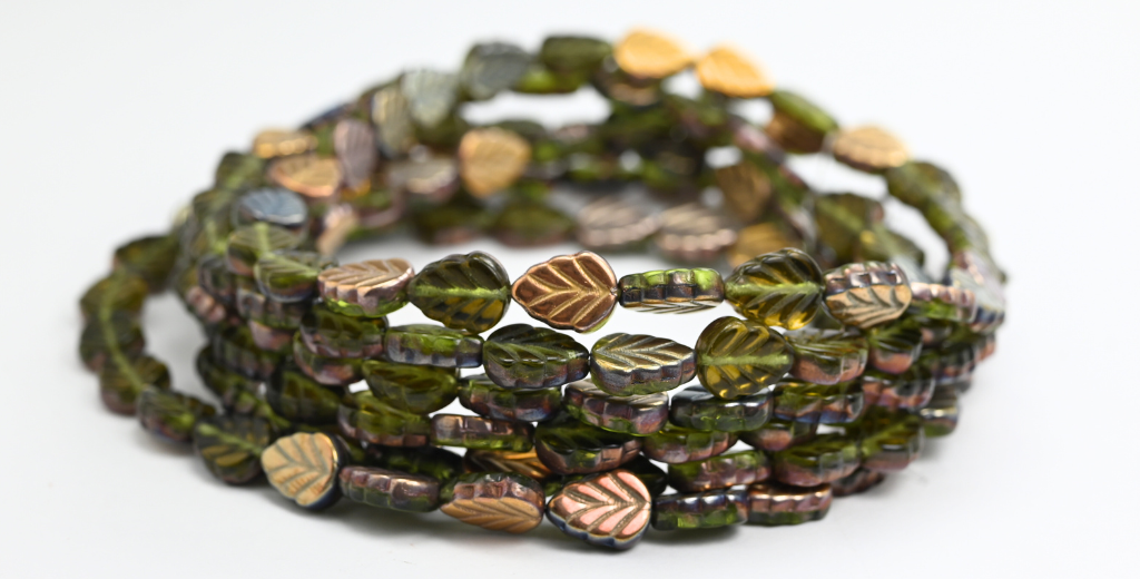 丁香叶压制玻璃珠,透明绿玫瑰金卡普里 (50200-27101),玻璃,捷克共和国