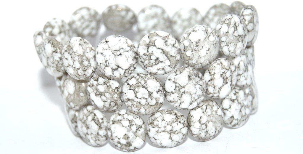 扁平圆形硬币压制玻璃珠,白色 15449 (02010-15449),玻璃,捷克共和国