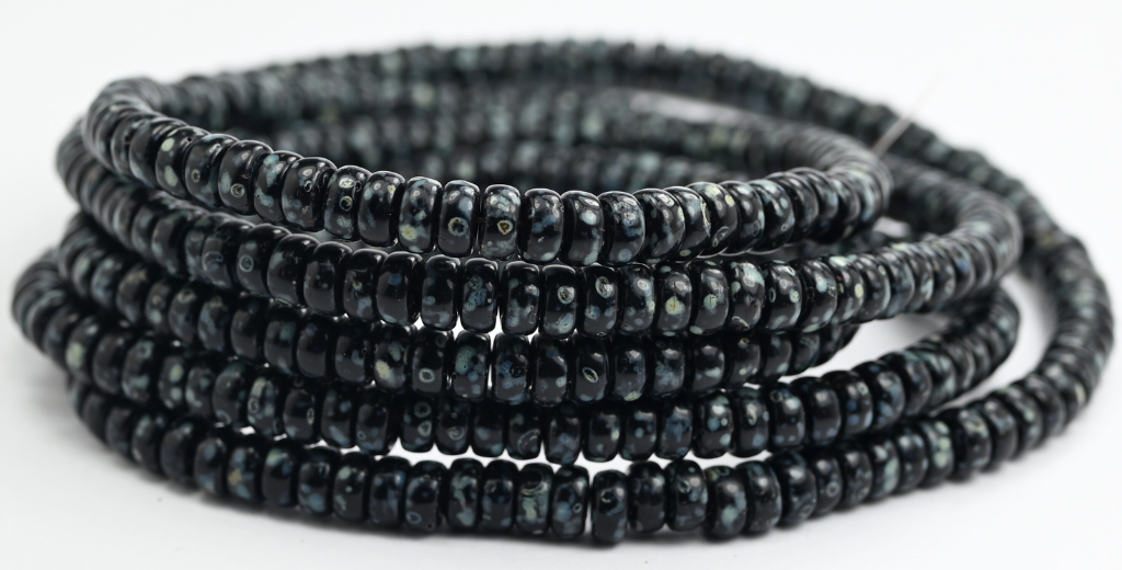 扁平圆轮压制玻璃珠,黑色毕加索(23980-43400),玻璃,捷克共和国