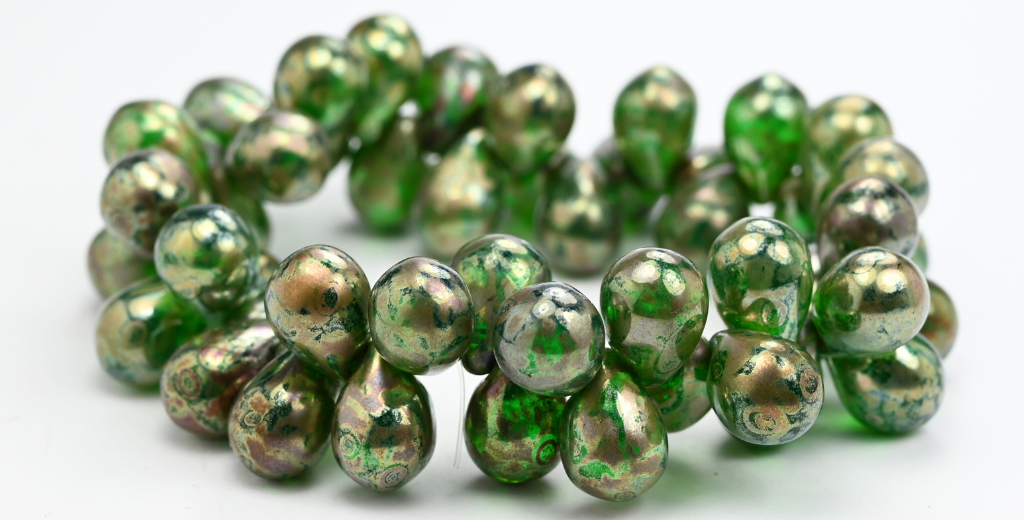 梨形泪滴压制玻璃珠,50600 Rembrandt Travertin (50600-43500),玻璃,捷克共和国 ~ STRANDED