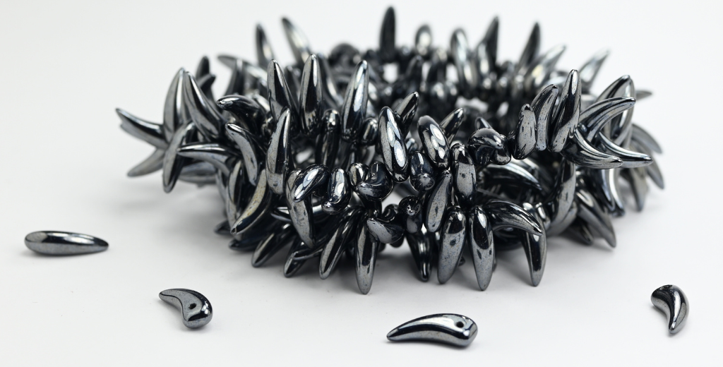 骨弓压制玻璃珠,黑色赤铁矿(23980-14400),玻璃,捷克共和国