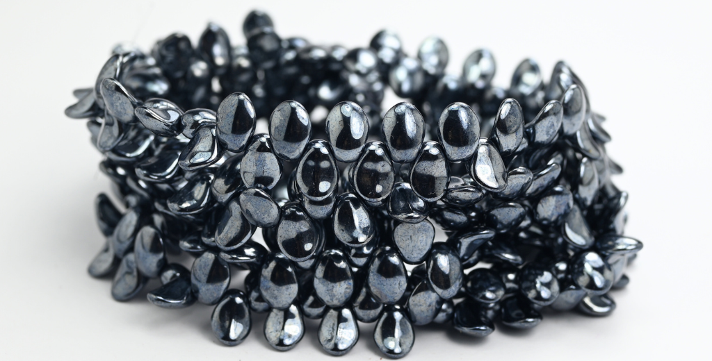 叶舌压制玻璃珠,黑色赤铁矿(23980-14400),玻璃,捷克共和国