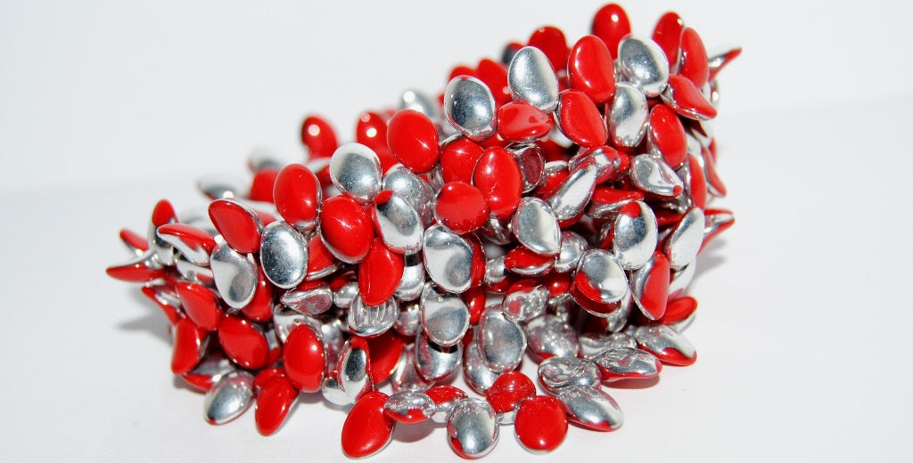 叶舌压制玻璃珠,红水晶银半涂层 (93190 27001),玻璃,捷克共和国