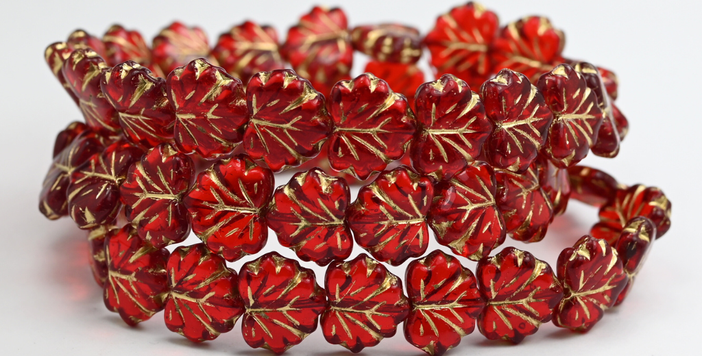 枫叶珠,红宝石色金边(90080-54202),玻璃,捷克共和国