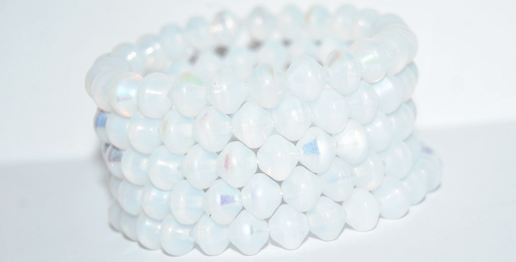 压制珠,蛋白石白AB色(01000-AB),玻璃,捷克共和国 ~ 串珠