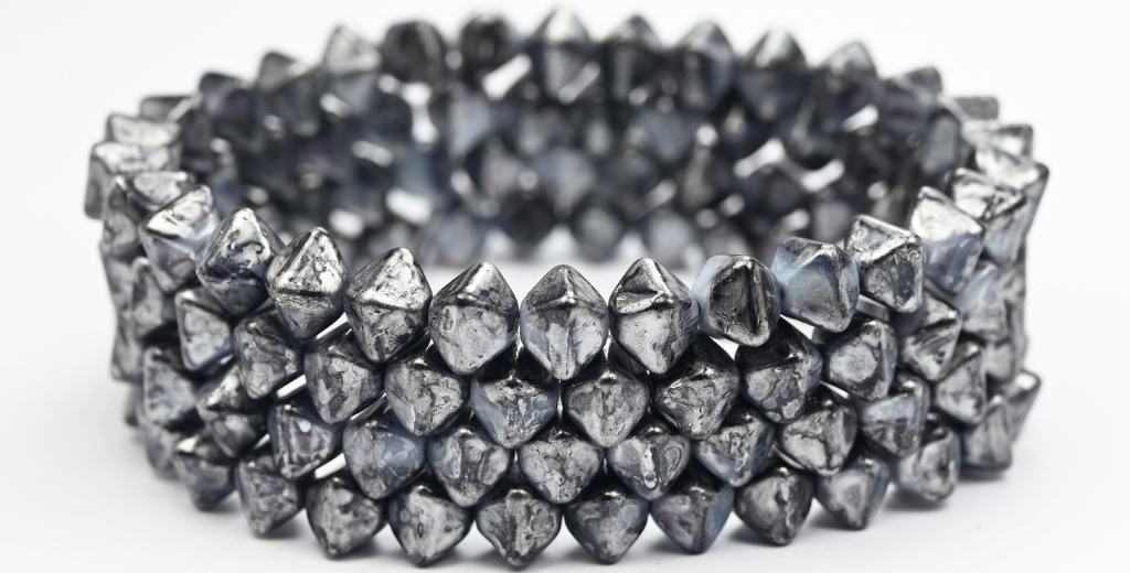 扁平双锥压制珠,棕白线银溅 (17025-LINE-86700),玻璃,捷克共和国 ~ STRANDED