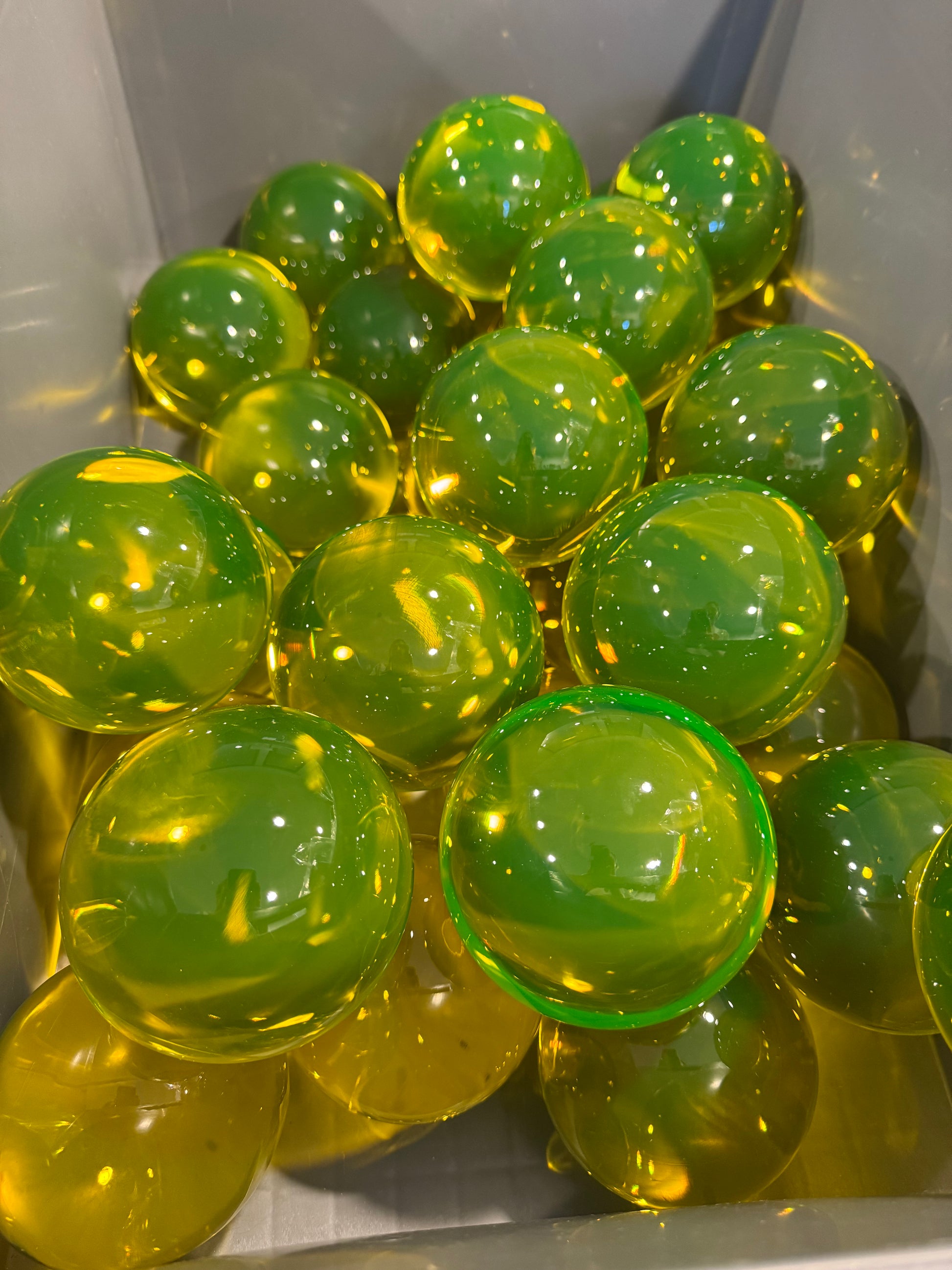 铀圆形玻璃球弹珠,无孔(一面平),玻璃,捷克共和国