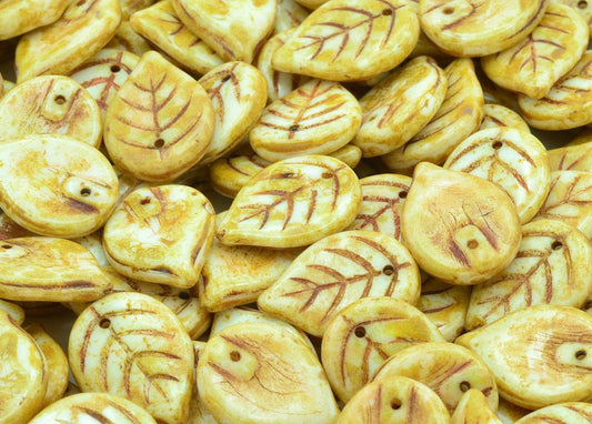 奥特莱斯 10克苹果叶珠,18 x 13毫米,粉笔白石灰华 (03000-86800),玻璃,捷克共和国
