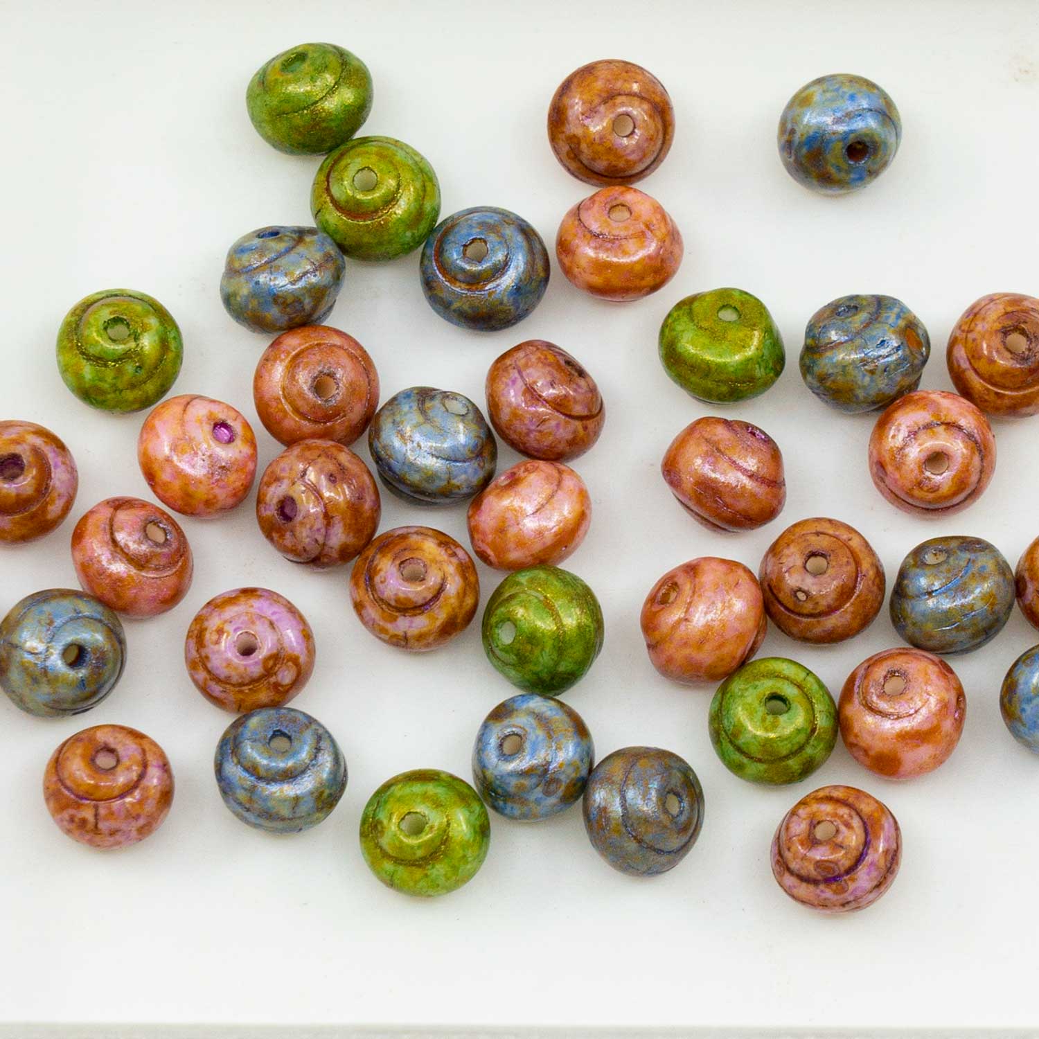 OUTLET 10 克圆形蜗牛珠,6 x 6 毫米,白色混合色(02010-mix),玻璃,捷克共和国