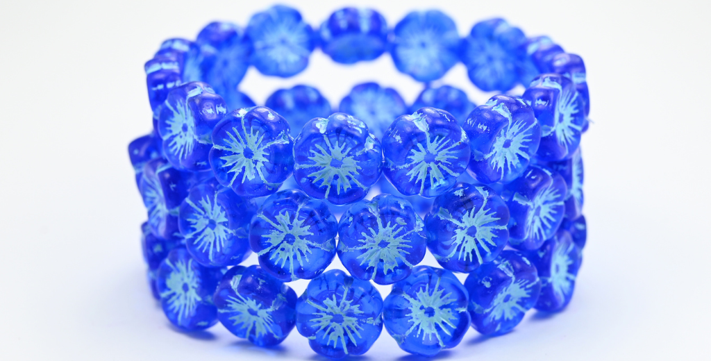 OUTLET 10克夏威夷花珠,14 x 14毫米,透明蓝色,浅蓝色内衬(30060-54308),玻璃,捷克共和国