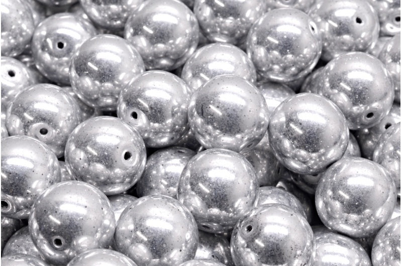 OUTLET 10克圆形压花珠,12 x 12毫米,水晶银色(00030-27000),玻璃,捷克共和国