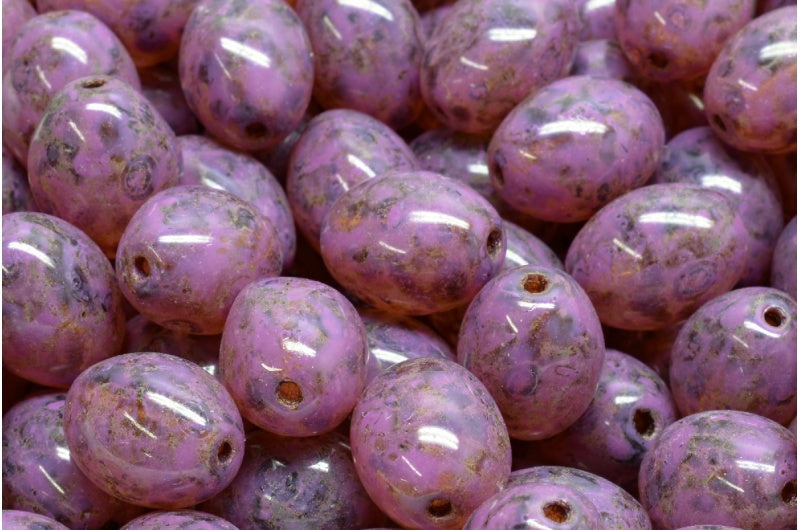 OUTLET 10克橄榄珠,13 x 10毫米,粉色斑点水晶洞石(00030-86800-33306),玻璃,日本